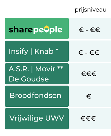 *2) Alleen via verzekeringsadviseur af te sluiten waarvoor extra advieskosten in rekening worden gebracht. Vaak enkele honderden euro’s per jaar.